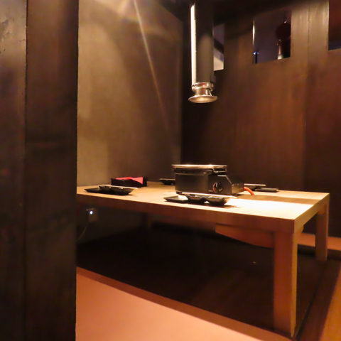 【半個室掘りごたつ席】半個室の掘りごたつ席でゆったり寛げる焼肉空間。足を伸ばしてリラックスしながら、厳選肉の旨みを存分に味わえます。大切な宴会にも最適です。