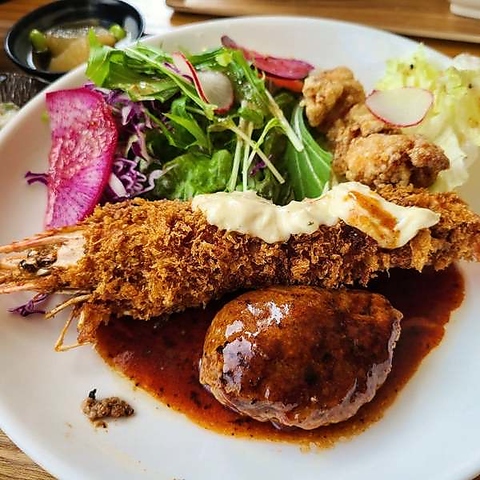 地元の農家から仕入れた新鮮野菜をふんだんに使用し、全て自家製にこだわったランチメニューをご提供。ハンバーグ、ジャンボエビフライ、唐揚げ等、当店のおすすめが詰まった「Okibiランチプレート」は食べ応え抜群の看板メニュー!少量で色々味わえる「Kokibiランチプレート」やハンバーグランチ、魚介のアヒージョランチなど種類豊富にご用意