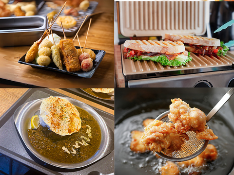 ◆こだわりおでんや特製ハンバーガー、ついつい食べたくなるたこ焼きや、お酒との相性抜群の串カツなど様々な料理を揃えてお待ちしております◎ お好きなお席をにお座りいただきましたら、好きなお店へ注文♪仲間といろいろ持ち寄って食べるのも普段とは違う楽しみが味わえる!