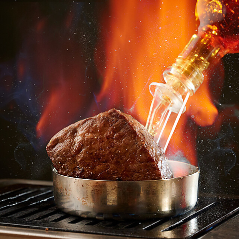 TVやSNSで大人気のごぉ名物『レッドクリフ』♪上質な200gの塊肉を豪快に焼き上げ仕上げにプランぺする一品です。レッドクリフ専用の特製ガーリックバターソースをたっぷり絡めてお召し上がり下さい。多くのファンの心を掴んだ逸品、肉を噛む喜びがここにあり。予約必須商品の為、ご予約の際に是非お求めください♪