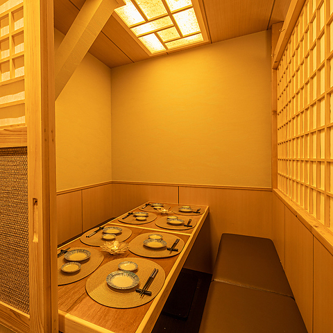少人数向けのお席は、ご友人やご家族とゆったり会話を楽しみながらお食事いただける落ち着いた空間です。周囲を気にせず、プライベート感のある完全個室もご用意しており、デートや女子会、接待などさまざまなシーンでご利用いただけます。和の趣を感じられる落ち着いた雰囲気の中で、心地よくくつろぎながらお食事をお楽しみください。