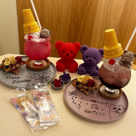 「くまの世界にお邪魔する」というコンセプトのもと、お客様はくまの耳をつけて入店♪世界観にどっぷりと没入できるような接客でおもてなしいたします◎食べることと、可愛さを一度に楽しめる非日常のひとときを演出。日本らしい文化を体験したい海外のお客様にも人気です!