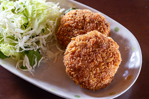 魚のなめろうにパン粉を付けて揚げた「さんがコロッケ」がおすすめ!風味豊かななめろうは、すでに味が付いているため、ピンクソルトを添えてそのままお楽しみいただけます。サクサクの衣としっとりとしたなめろうのコンビネーションが絶妙です。また、もう一つの人気メニューはくじらの竜田揚げ。こちらもぜひご賞味ください。