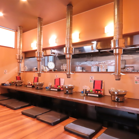 お1人でのご利用や、デートや友人との2人でのご利用など、少人数でのお食事にも使いやすいカウンター席も完備しています◎掘りごたつなので、足を伸ばしてゆったりと焼肉や料理をご堪能いただけます!