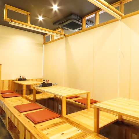 ゆったりと寛げる座敷席をご用意しております。こちらは禁煙席となりますので、お子様やおタバコを吸わない方も安心してご利用いただくことが可能です。ロールカーテンで半個室にすることもできますので、団らんの時間を気兼ねなくお楽しみいただけます。