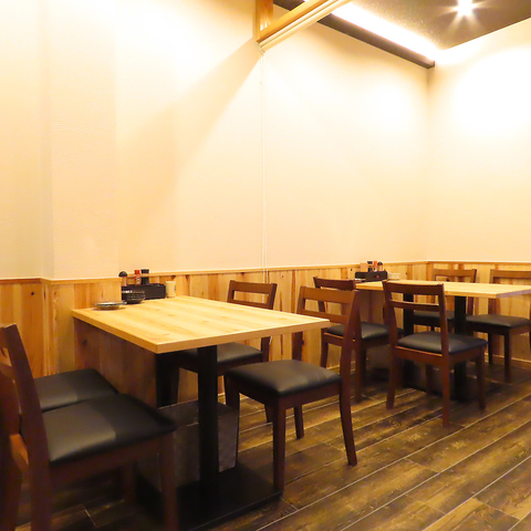 大人デートや小宴会、女子会にもぴったりな、4名掛けのテーブル席をご用意しております。鶏専門店ならではの本格串焼きとお好みのドリンクを囲み、和やかなひとときをお楽しみください。