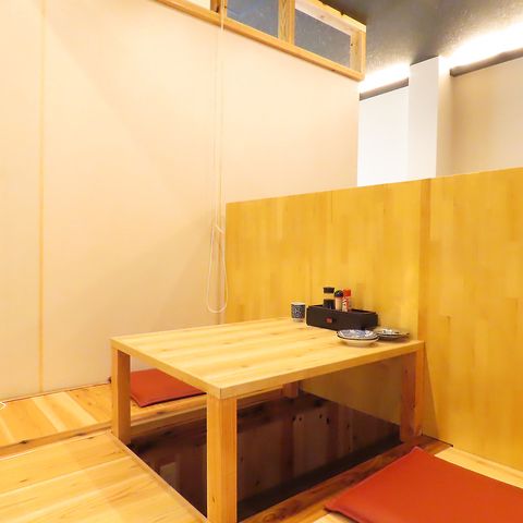 ロールカーテンを下ろし、ゆったり流れるプライベート時間を満喫しながら、ご夫婦・カップルのデート利用や会社帰りの一杯を楽しむことができる掘りごたつ席は、人気のお席です。