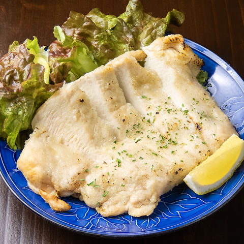 香ばしく焼き上げられた鯛の頭を使用した一品「鯛のカマ焼き」外はパリッと、中はふっくらとした食感が楽しめます。添えられた大根おろしとレモンを合わせることで、さっぱりとした味わいが引き立ち、鯛の旨味を一層楽しめます◎