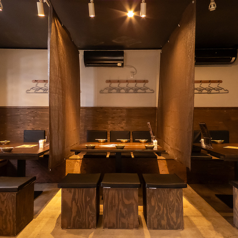 温かな照明が照らされたた落ち着きのある店内◎席との間に仕切りがあるので周囲を気にせずに過ごせます。