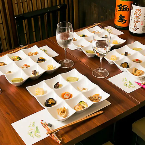 当店いちおしの旬の会食コースでは自家製西京味噌漬け、燻製、旬のお造りなど目に舌に四季感じることができる逸品をご用意いたします。贅沢な宴会やお仲間での飲み会はもちろん、接待や記念日にもぴったりのコースです。