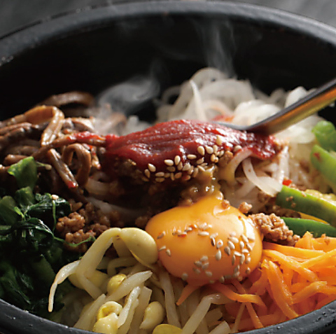 アツアツの石鍋で仕上げる香ばしいおこげと、新鮮な具材の旨みが絶妙にマッチ。特製コチュジャンが全体をまとめあげ、見た目の華やかさも楽しめる心もお腹も大満足の逸品です。