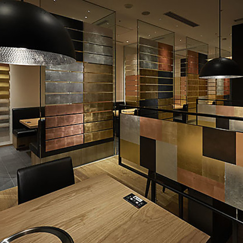 温かみのある木材とスタイリッシュな金属のコントラストが美しい内装。落ち着いた色合いが心地よい空間を作り出し、リラックスしながらお食事を楽しむことができます。
