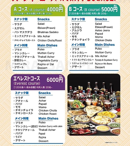 本格ネパール料理とお酒が楽しめる飲み放題コース!