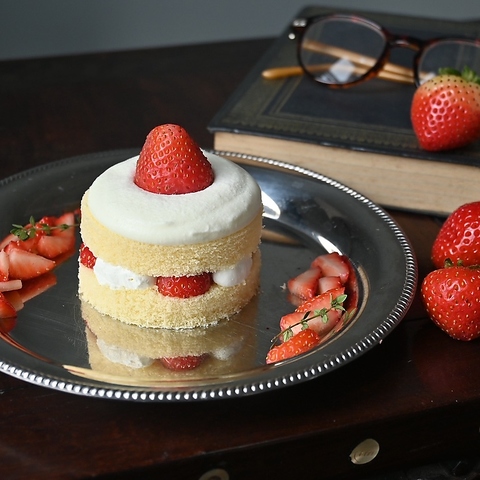 ふわっと軽いスポンジにたっぷりのクリームとみずみずしい苺。キャンドルのような見た目がかわいいデザート。