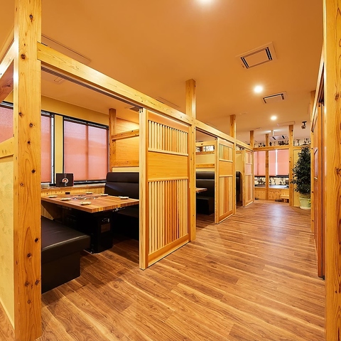 木の温もりを感じる個室は、少人数での宴会にぴったりです。周りを気にせず、気兼ねなくにぎやかな時間を。