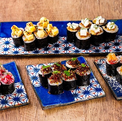 小皿料理に加えて彩どり鮮やかなお寿司も用意。囲炉裏の海鮮はもちろん、お刺し身も用意しております。