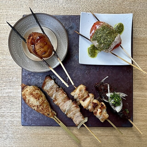 博多の料理人が丹精込めて焼き上げた絶品串焼きをご提供。ソムリエ厳選のお酒とのマリアージュも楽しめます