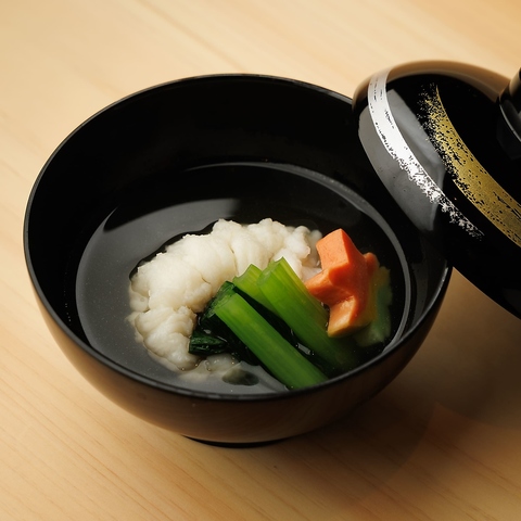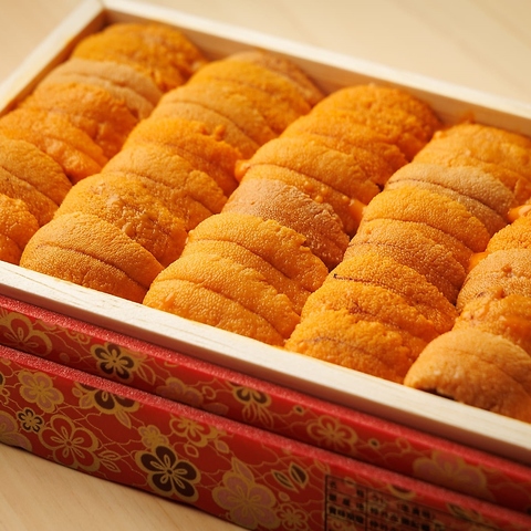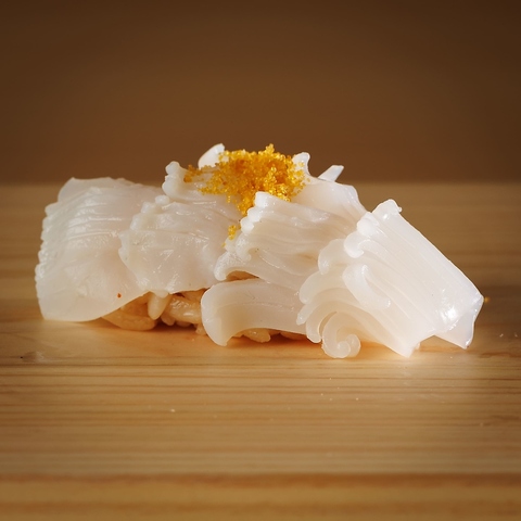 握りのみならず、五感でお愉しみいただける創作の逸品を数多く用意。名物「タンタカブーケ」は本マグロとウニをふんだんに使い、花束のように仕上げたオリジナリティ溢れる可愛い巻き寿司。さらに一部コースにて提供する「イクラの小丼」「蒸し鮑肝ソース」など、味・食感・見た目全てが一級品の創作料理をご堪能下さい。