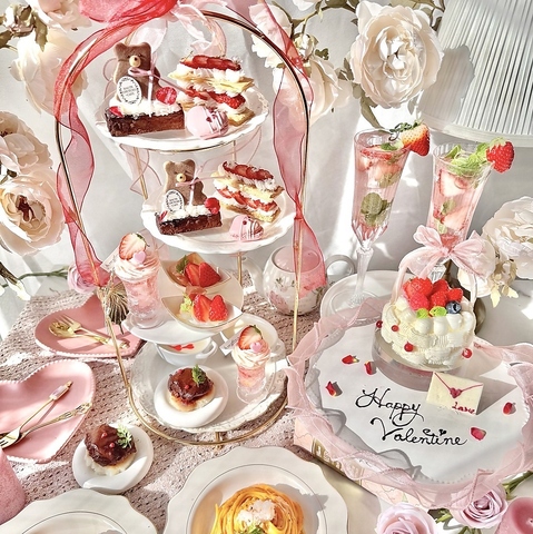 ハートにショコラなどこの時期だけ許されるlovelyさをオートクチュール仕様にしたアフタヌーンティーが登場です。ラブレターがついたstrawberrybasketのケーキなど、食べるのがもったいないずっと見てたいデザートが勢揃い。