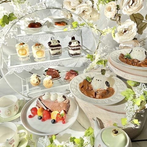 圧倒的な世界観に浸れる、当店自慢のアフタヌーンティー。四季折々のテーマに合わせて、店内装飾からスイーツ、お食事の内容まで全てが一新されます。まるで別世界に来たような没入感の中で、優雅なティータイムを。見た目の可愛さはもちろん、味のクオリティとボリュームにも自信があります。