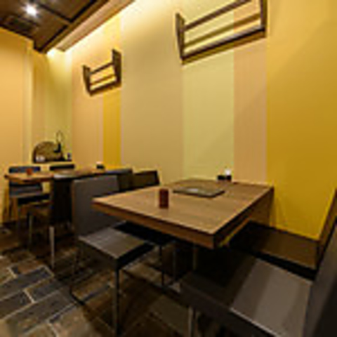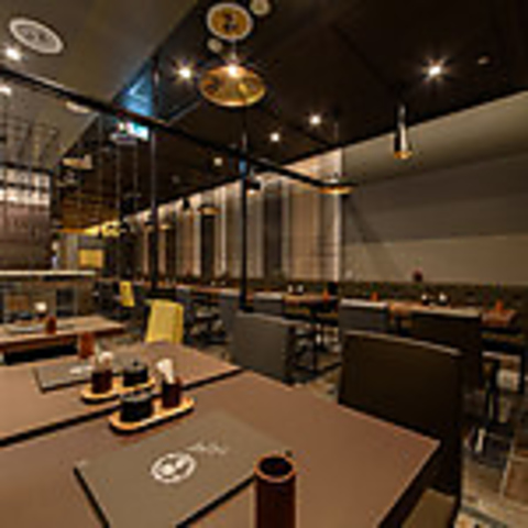 洗練されたインテリアが特徴的な空間です。シックな色合いの壁と木目調の床が調和し、落ち着いた雰囲気を醸し出しています。テーブル席は、シンプルながらも機能的で、快適に過ごせるデザインが施されています。 また、店内の照明は柔らかく、リラックスした時間を演出しています。友人や家族との会話を楽しむのにぴったりな空間です。