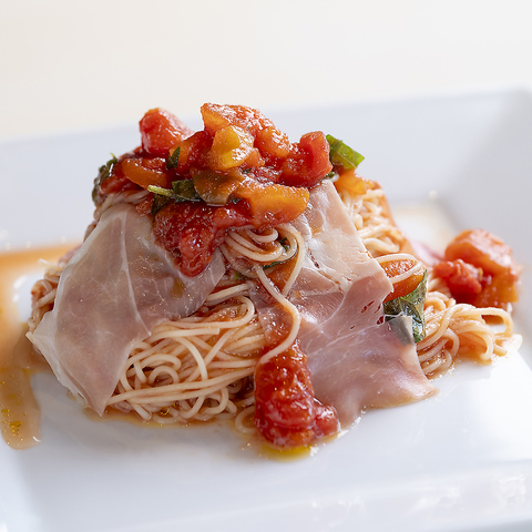 ◇◆モチモチ麺がソースによく絡み合う◇◆トマトと生ハムの冷製カッペリーニ