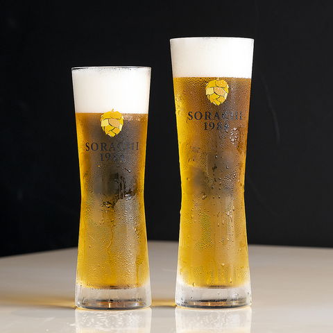絶品料理に合わせたドリンクメニューをバリエーション豊富に取り揃えております♪ビールはこだわりの【SORACHI 1984】を自信を持ってご提供。また、気軽に乾杯が楽しめるスパークリングワインや、選りすぐりのグラスワインなど、お誕生日やお祝いの席にもピッタリな素敵なラインナップを揃えております。