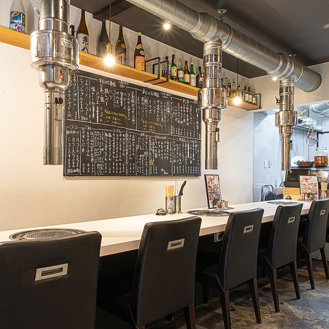 まさに食を楽しむためにお席。目の前には豊富なメニューが掲示されたボードがあり、選ぶ楽しさを引き立てています。シンプルなデザインのお席は、居心地が良く、焼肉を心ゆくまで堪能するのに最適です。自分のペースで焼き加減を調整できるのも魅力の一つ。食材が焼ける香ばしい匂いが漂い、食欲をそそります♪