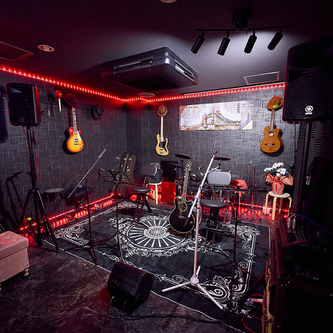 土日はライブハウスとしてお楽しみいただけます♪カラオケもバンド演奏も楽しめる多彩なスタイルで、思い出に残るひとときをお過ごしください。ヤマハのステージパスやBOSEスピーカー、リズムボックス等を完備し、最高の音質であなたのパフォーマンスを引き立てます!平日限定プランや、バンドマン応援プラン等もご用意してお待ちしております!