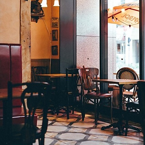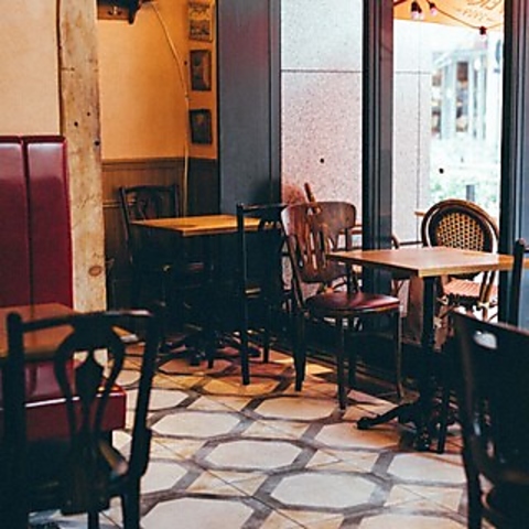 心地よい居心地を提供する特別な空間です。温かみのある木製のテーブルと椅子が並び、アンティーク調のインテリアが落ち着いた雰囲気を醸し出しています。大きな窓からは自然光が差し込み、明るい日差しが心を癒してくれます。お友達との会話や、ひとりでの読書にぴったりな環境です。