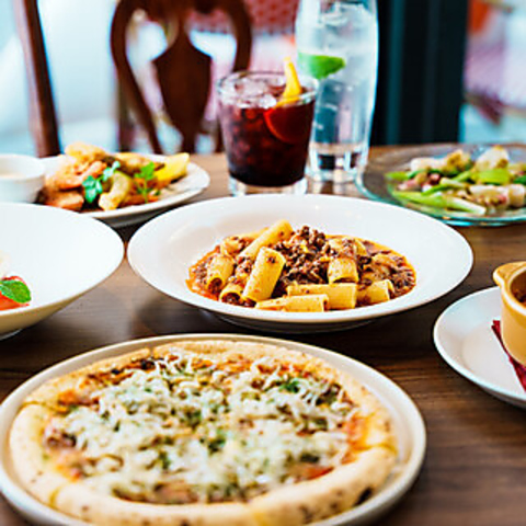 まるでリゾート地にいるかのような開放感を提供します。鮮やかなテーブルクロスと、ポップな椅子が並ぶ空間は、心を弾ませてくれます。おいしい料理を楽しみながら、友人との会話や、ゆったりとした時間を過ごすのに◎青い空と緑の風景は食事だけでなく、まさにリフレッシュできる場所★日常から離れたひとときを過ごしてみてください♪