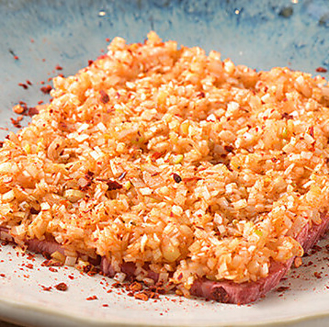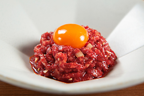 国の厳格な基準をクリアした、安心安全な生肉を使用した逸品です♪新鮮な黒毛和牛の赤身と特製のタレ、とろける卵黄が織りなす濃厚な味わいは、まさに至福のハーモニー。丁寧に和えられたユッケは、口に入れた瞬間に豊かな肉の旨みが広がり、とろけるような舌触りが特徴です。