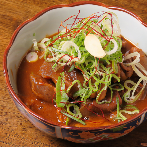 名古屋の土手煮ではなく、味噌ベースながらちょっとあっさりめの味わいが特徴のもつ煮です。しっかり煮込んだもつの旨みににんにくがほんのり香り、お酒も進む一品となっています。注目は煮込んだ厚切り豆腐が乗っていること◎味が染み込み、もつに負けない存在感です。豆腐もメインとして楽しめるもつ煮となっております♪