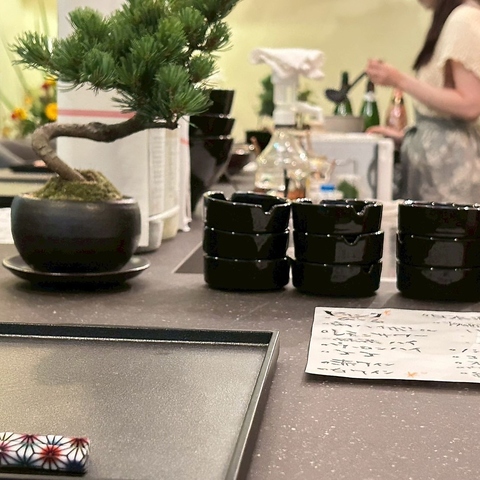 竹の装飾や盆栽のある店内は、ごゆっくりお過ごしいただけます。