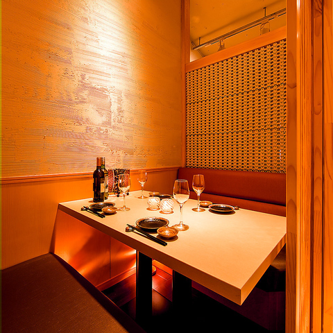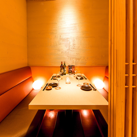 完全個室で他の客に気を使うことなく、リラックスしてお食事が楽しめます。落ち着いた雰囲気の中、デートや大切な会話の場に最適です。特別な時間を大切な人と一緒に過ごし、心地よい空間でゆっくりと料理を堪能してください。