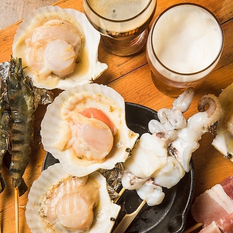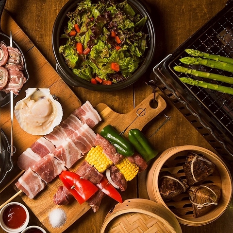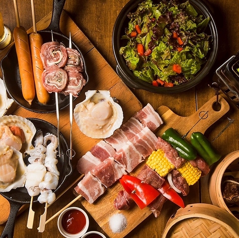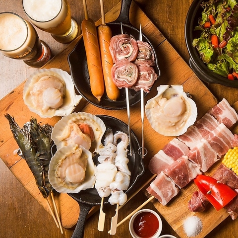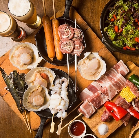 厳選した肉と、新鮮な帆立やイカを使ったバーベキューが自慢です!旨みが充分に引き出された海鮮と、ジューシーなお肉が織り成す絶妙なハーモニーを、ぜひご堪能ください♪