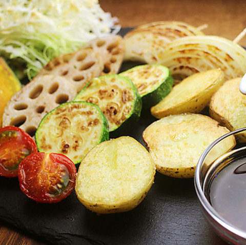 自家製バーニャカウダソースで食べる「焼野菜サラダ」人気メニューです!旬の味、季節を感じてください。