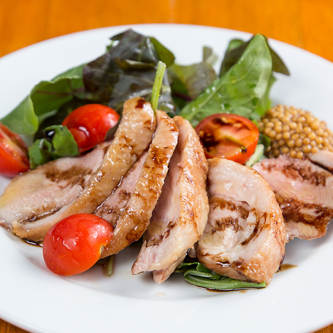 こだわりの仕入れで選んだ京都産の鴨ロースを、炭火でじっくりと炙って香ばしく仕上げました!しっとり柔らかく、ジューシーな肉汁に炭の香りがふわり♪特製マスタードとの相性も抜群で、鴨の旨みを引き立てる逸品です◎お酒とのペアリングもぜひ楽しんで!