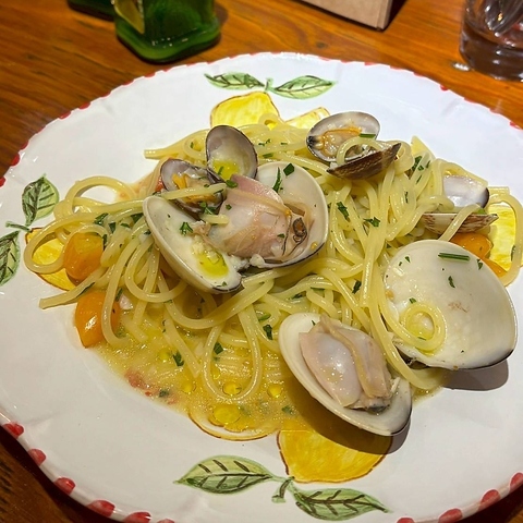 季節ごとの旬食材を使った【特製パスタ】が大好評!中でも大ぶりの蛤を贅沢に使ったペペロンチーノは、旨みが溶け込んだスープがパスタに絡んでやみつきに♪ニンニクの香りと絶妙な塩加減がクセになる美味しさ。白ワインとの相性も抜群で、至福のひとときを演出します◎