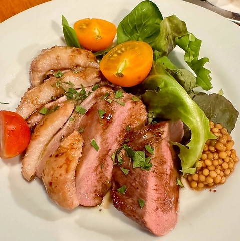 こだわりの仕入れで選んだ京都産の鴨ロースを、炭火でじっくりと炙って香ばしく仕上げました!しっとり柔らかく、ジューシーな肉汁に炭の香りがふわり♪特製マスタードとの相性も抜群で、鴨の旨みを引き立てる逸品です◎お酒とのペアリングもぜひ楽しんで!