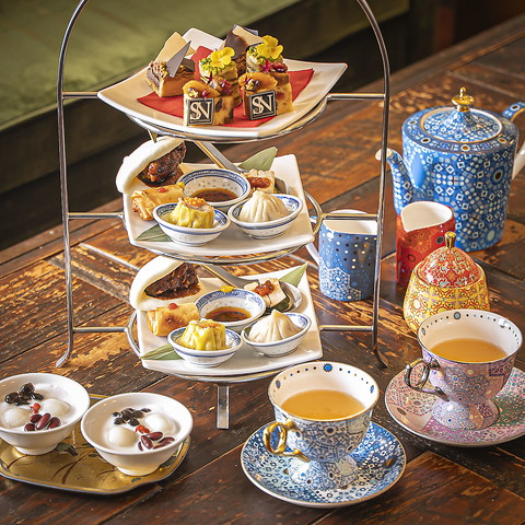 老舗の点心と極上スイーツの競演】ディナーで愛されるやみつき点心セットに、京町堀の老舗 Seiichiro NISHIZONOの「香りを纏う」特別なケーキを合わせた贅沢なアフタヌーンティー。点心 × ケーキという至福のマリアージュを、ご友人や大切な方と優雅な午後のひとときとしてお楽しみください。