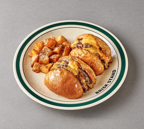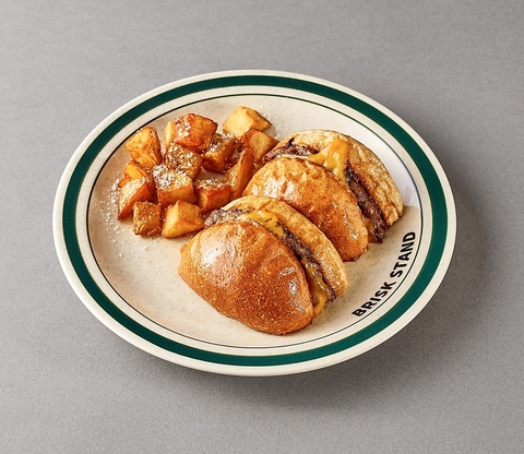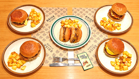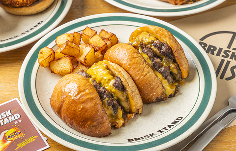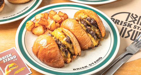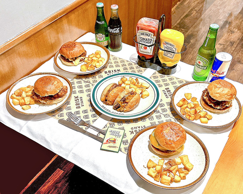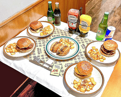 ≪BRISKSTANDの看板商品≫国産牛100%の肉汁パティからあふれ出る熱々の肉汁を切った断面に吸わせて、さらにその断面を2度焼きし肉汁の旨みを一層引き立てた極上の一品です!いまメディアでも話題沸騰中の“新感覚バーガー体験”をぜひお試しください♪