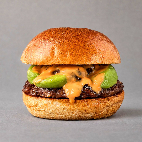 国産牛100%のパティと濃厚でフレッシュなアボカド、こだわりの手作りソースが三位一体となり素材本来の旨みとコクを存分に楽しめる贅沢なバーガー【材料:パティ/アボカド/煮たまねぎ/オリジナルソース】