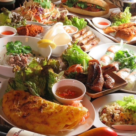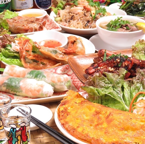 新鮮な野菜やハーブをたっぷり使い、特製スパイスで仕上げた料理は、本場ベトナムの味わいです。おつまみにぴったりの「生春巻き」から〆の「フォー」まで、充実した品揃え。各種コースでは飲み放題もご利用可能です。ランチも大好評営業中!