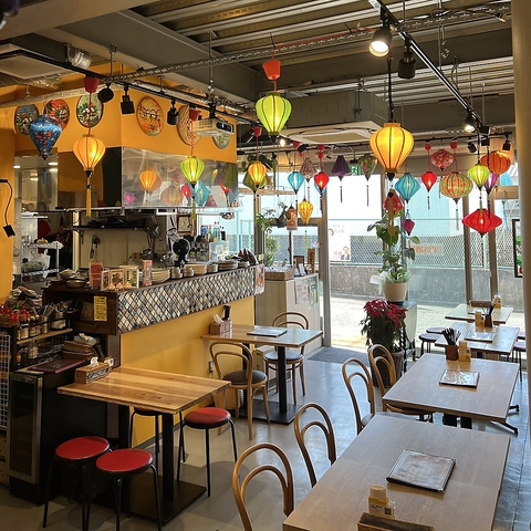 喧騒から離れた落ち着いた場所にあり、ゆっくりと食事をしたい方におすすめです 。店内はベトナムの雰囲気を再現した癒し空間となっており、日常の疲れを忘れさせてくれます 。温かみのある照明とベトナム風のインテリアが配置され、非日常的な空間で最高に楽しい時間をお過ごしいただけます 。