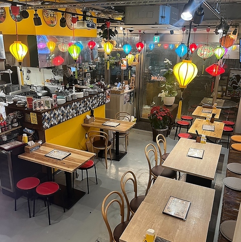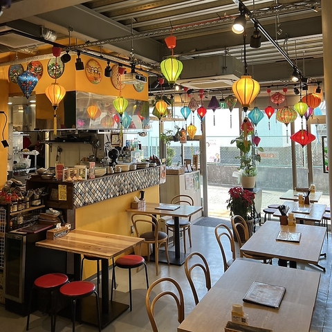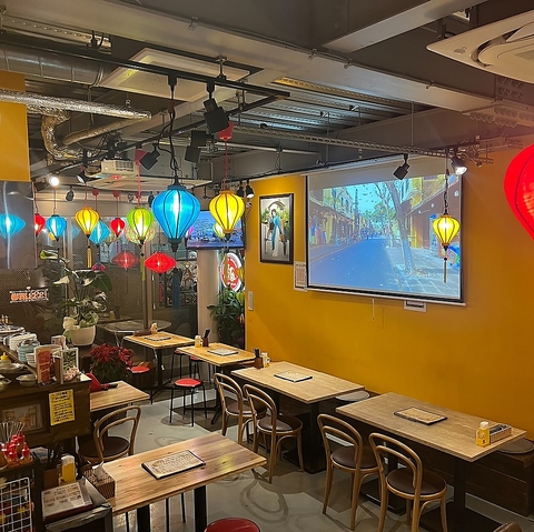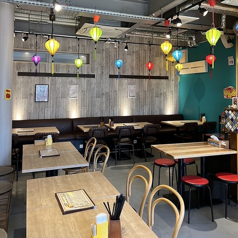 喧騒から離れた落ち着いた場所にあり、ゆっくりと食事をしたい方におすすめです 。店内はベトナムの雰囲気を再現した癒し空間となっており、日常の疲れを忘れさせてくれます 。温かみのある照明とベトナム風のインテリアが配置され、非日常的な空間で最高に楽しい時間をお過ごしいただけます 。