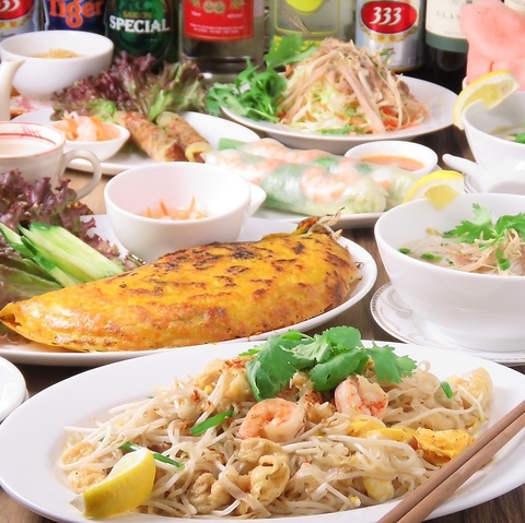 新鮮な野菜やハーブをたっぷり使い、特製スパイスで仕上げた料理は、本場ベトナムの味わいです。おつまみにぴったりの「生春巻き」から〆の「フォー」まで、充実した品揃え。各種コースでは飲み放題もご利用可能です。ランチも大好評営業中!
