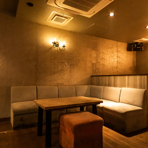 6名様までご利用いただけるソファーテーブル席を1卓完備しています。インテリアや照明での演出にもこだわった店内は、間接照明の光に照らされたリラックス空間です。気の合う仲間との宴会や飲み会、女子会やママ友会、合コンのご利用にもピッタリ◎長時間滞在したくなる心地よさで、至福のひとときを是非お過ごしください。