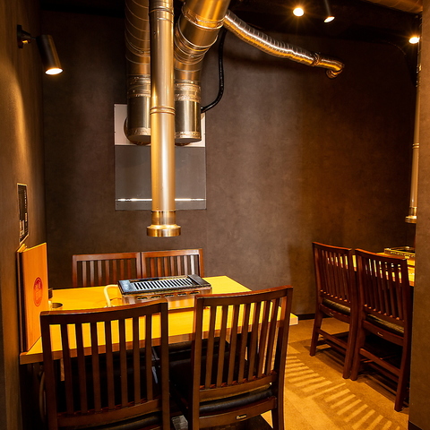 【梅田で焼肉なら-忍鬨-】店内は広々とした空間んで4名様テーブルが3つ、6名様テーブルが1つと会社のご宴会や貸し切りなどにもご利用いただけます◎もちろん少人数のママ会や、女子会、ご家族とのご利用にもお立ち寄りください♪