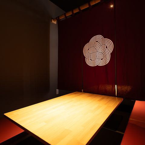 8名様から10名様までご利用いただける個室は、落ち着きのある空間で、周囲を気にせずゆったりとお過ごしいただけます。大切な方との接待の場としてはもちろん、親しいご友人やご家族とのご宴会にも最適。隠れ家のような心地よい雰囲気のなか、「食」と「空間」と「人」がつながる特別なひとときをお過ごしください。